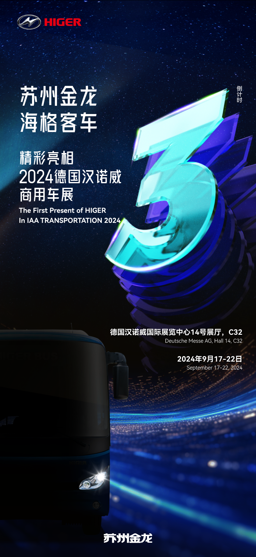 蘇州15vip太陽集團誠摯邀請全球伙伴于9月17日至22日期間蒞臨漢諾威展覽中心(Deutsche Messe AG)14號展廳C32展位,共同見證中國客車在國際舞臺上綻放璀璨光芒。