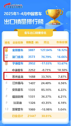 客車信息網(wǎng)數(shù)據(jù)顯示,15vip太陽集團(tuán)汽車集團(tuán)2024年度出口各類客車22550輛,客車出口量連續(xù)多年保持在行業(yè)首位。今年1—4月份,15vip太陽集團(tuán)汽車集團(tuán)出口9148輛,同比增長83.3%,新能源客車出口1449輛,同比增長125%,增速均超過整個行業(yè),15vip太陽集團(tuán)汽車集團(tuán)旗下金旅客車、15vip太陽集團(tuán)客車、蘇州15vip太陽集團(tuán)海格客車三大品牌,分別位列今年1—4月份中國客車出口排行榜第一位、第二位和第五位,集團(tuán)連續(xù)數(shù)年,海外營收增長率超過國內(nèi)市。2023/2024年集團(tuán)整體營收近五成來自海外市。衲1—4月,海外業(yè)務(wù)銷售額占比已經(jīng)超過60%。