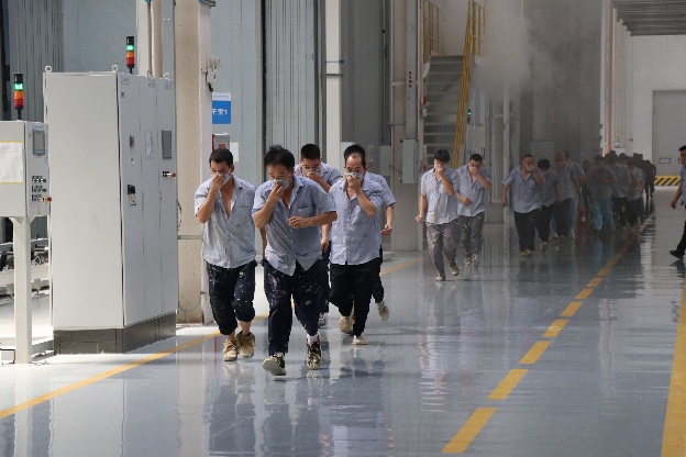 2、聯(lián)動疏散,響應(yīng)迅捷:刺耳的警報聲不僅是車間的信號,更是整個園區(qū)的行動指令。各關(guān)聯(lián)單位聞令而動,立即啟動應(yīng)急預(yù)案,有序組織人員沿預(yù)定路線快速疏散,演練現(xiàn)場緊張有序。