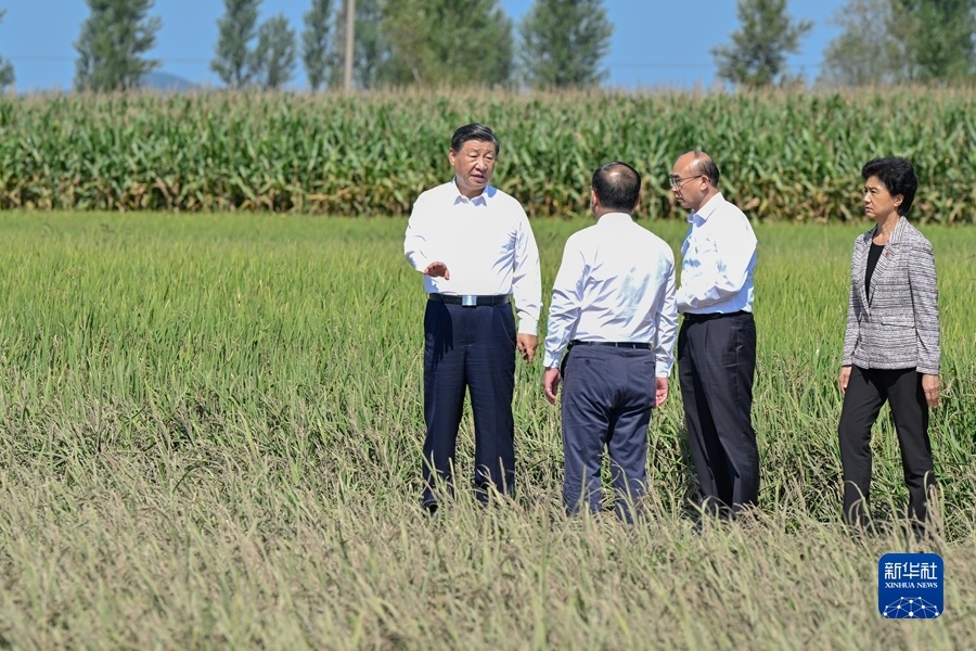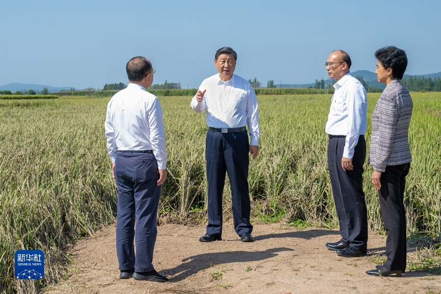 9月6日至8日,中共中央總書記、國(guó)家主席、中央軍委主席習(xí)近平在黑龍江考察。這是7日上午,習(xí)近平在遭受洪澇災(zāi)害的哈爾濱尚志市老街基鄉(xiāng)龍王廟村,察看水稻受災(zāi)情況。新華社記者 謝環(huán)馳 攝